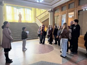Во время экскурсии студенты посетили несколько отделов библиотеки, среди которых отдел документов по гуманитарным и естественным наукам, где хранятся книги и журналы по психологии, педагогике и смежным дисциплинам; отдел научной информации и библиографии, помогающий пользователям ориентироваться в каталогах и справочных системах, а также сектор редких изданий, депозитарного отбора и хранения документов, где собраны уникальные и исторически значимые книги. Участники экскурсии познакомились также с работой отдела информационных технологий и электронных ресурсов, где представлен доступ к цифровым базам данных и современным электронным изданиям.