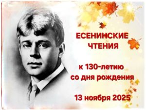 Научно-просветительский центр Донецкого государственного университета совместно с Донецким республиканским художественным музеем, Донецкой государственной музыкальной академией имени С.С. Прокофьева 13 ноября 2025 года проводит юбилейные мероприятия, посвященные 130-й годовщине со дня рождения С.А. Есенина.