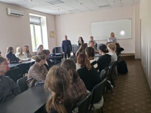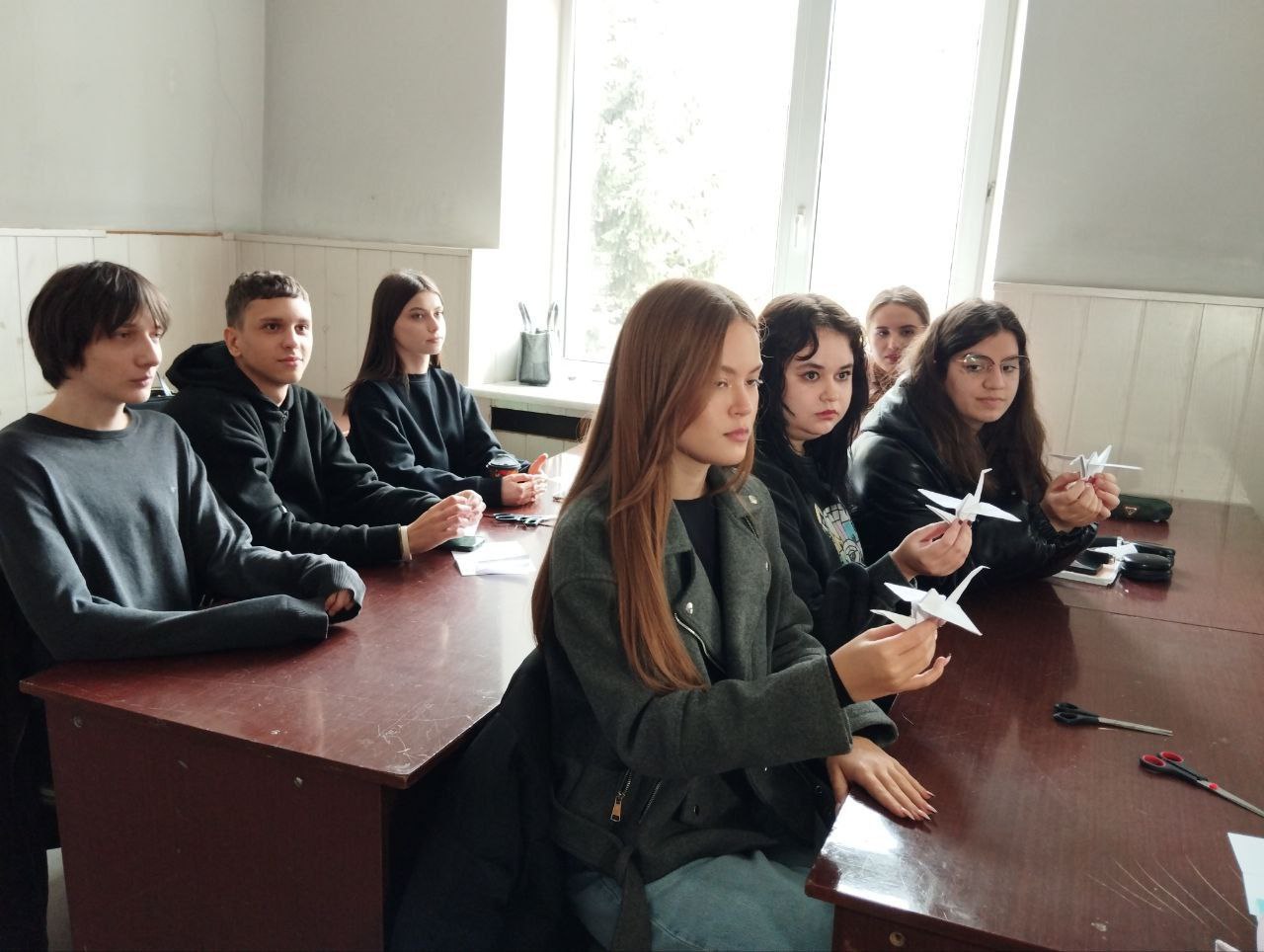 Ведущий советник Министерства угля и энергетики ДНР, финалист конкурса наставников по патриотическому воспитанию «Быть, а не казаться», финалист кадрового конкурса «Донбасс. СВОи Герои» Роман Шульга прочитал студентам лекцию, в которой рассказал студентам об истории Дня белых журавлей, о сущности символики белых журавлей, традициях, важности сохранения памяти о подвигах солдат, которые пали на поле боя защищая Родину.