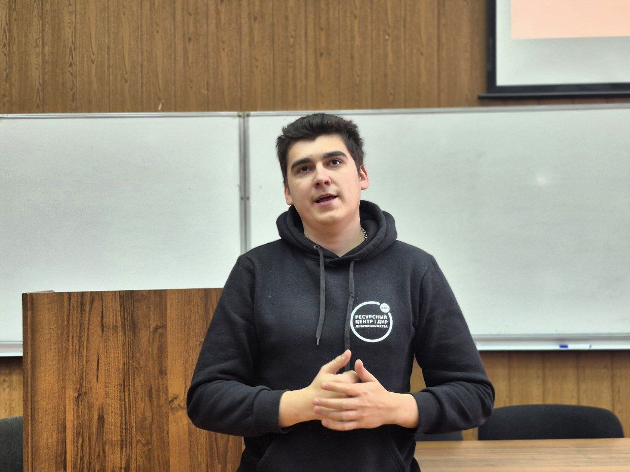 Начальник отдела по реализации программ, мероприятий и проектов Донецкой региональной общественной организации «Ресурсный центр поддержки добровольчества» Артём Лужанский и руководитель штаба #МЫВМЕСТЕ ДонГУ Арина Лобанова ознакомили студентов с основными направлениями своей работы, рассказали о возможностях всероссийской платформы «Добро.ру» и озвучили планы по реализации новых инициатив в ближайшей перспективе.