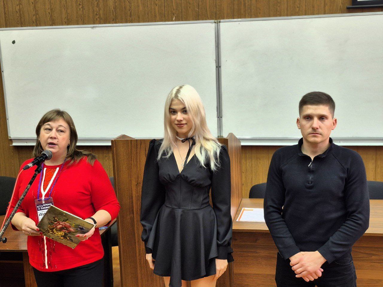 На встрече выступили представители благотворительного фонда «Время добрых». Они рассказали о развитии волонтерского движения и его социальной значимости, поделились информацией о текущих проектах фонда и пригласили присоединиться к благотворительной акции «Коробка храбрости» для больных детей.