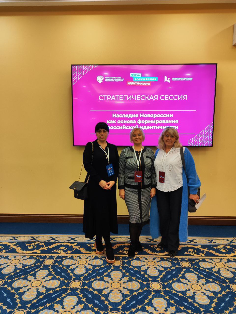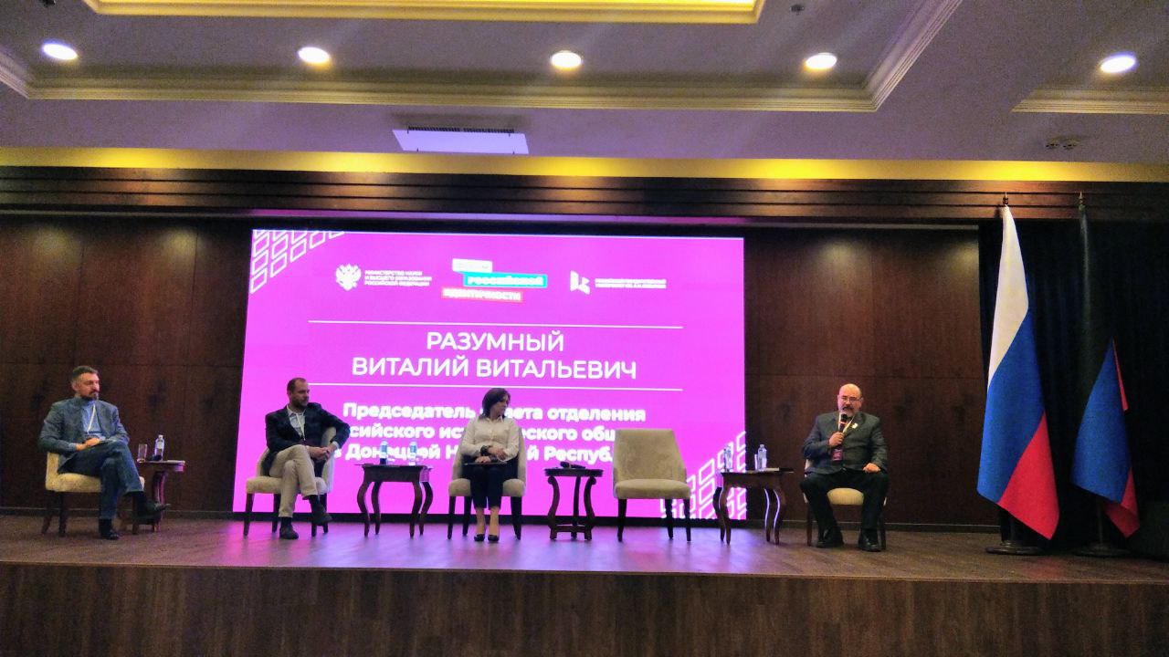 Председатель Совета правления РИО в ДНР, доцент ДонГУ Виталий Разумный выступил на секции, посвященной наследию Новороссии как основе формирования российской идентичности. «В украинских учебниках пытались преподнести историю этого региона как колонии Юга России. Но здесь никогда не было колоний, люди разных национальностей всегда гармонично уживались. Русский язык и культура были фундаментом русского Донбасса. Наша священная обязанность — сохранить нашу историю».