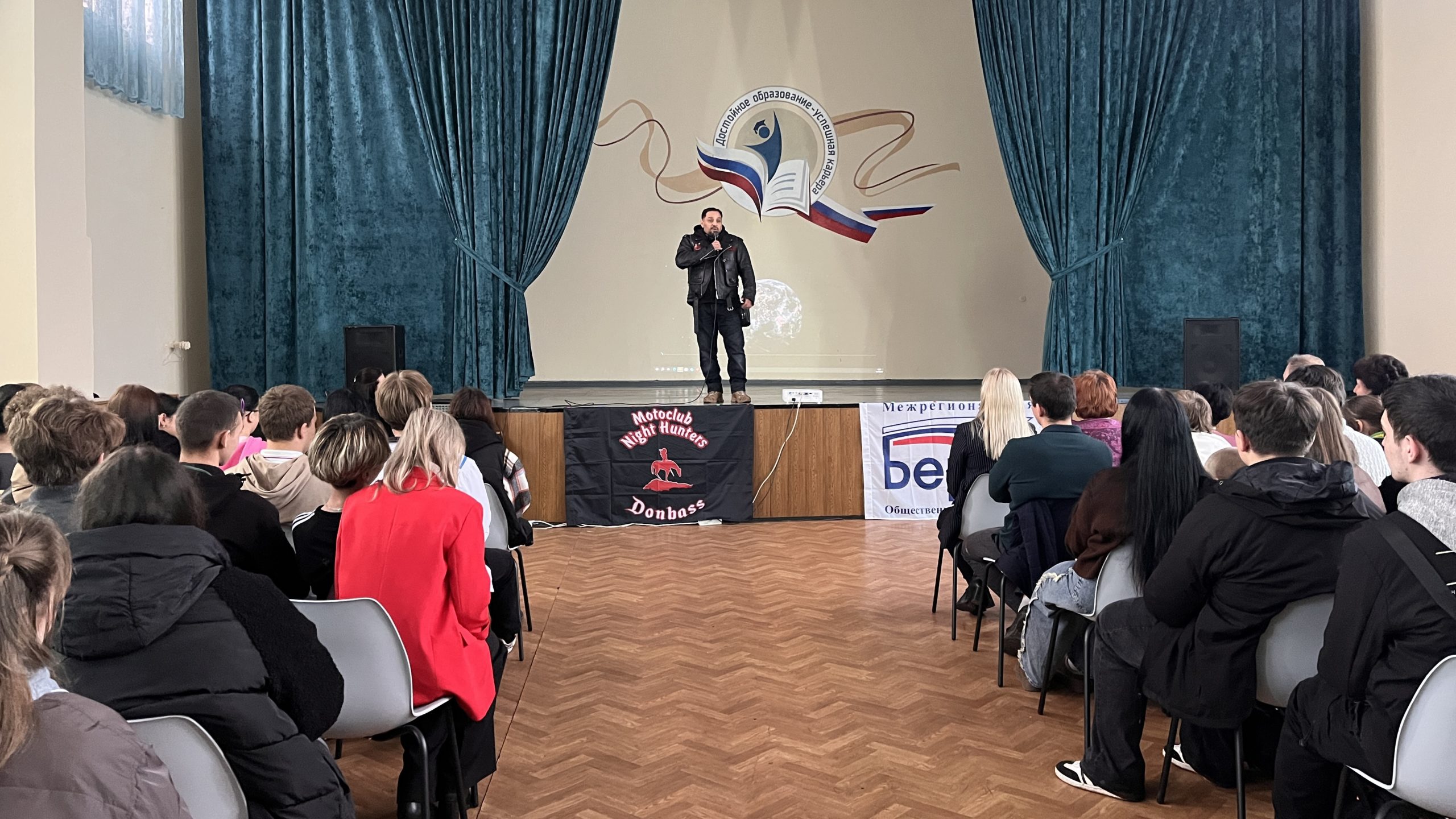 12 ноября в стенах ЕТЭМ ДонГУ состоялась поистине значимая встреча, объединившая энергию и стремления студенческой молодежи с мудростью и богатым опытом человека, чья жизнь является примером служения Отечеству. Гостем студентов стал Владимир Продан — яркая и многогранная личность, руководитель Межрегиональной общественной организации содействия культуре и спорту «Берег» Донбасского отделения, президент мотоклуба «Night Hunters MC Donbass» («Ночные охотники»), защитник Отечества, спортсмен и тренер.