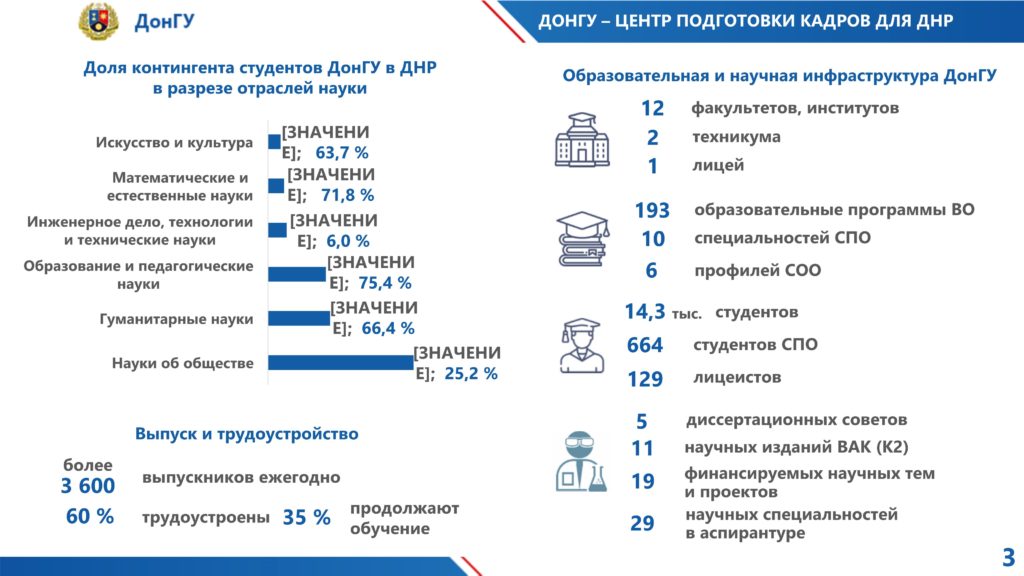 При этом наши 40 тысяч выпускников получили образование, полностью соответствующее российским стандартам, с учетом разработанных в ДонГУ новых подходов и методологии воспитательной работы.