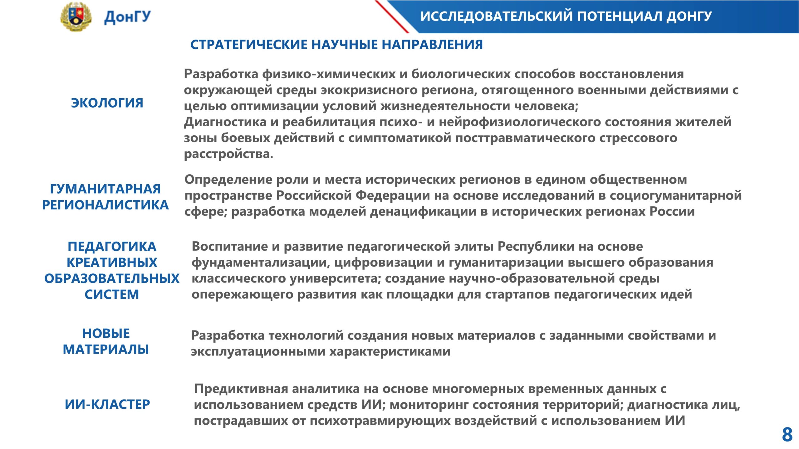 Несмотря на десятилетия стагнации после развала Советского Союза, на трудности новейшего периода нашей истории – борьбы за Русский Донбасс, научно-образовательный потенциал университета, особенно в кадровом отношении, сохраняет свой уровень в достаточной мере для выполнения задач, стоящих перед наукой и образованием нашей страны.