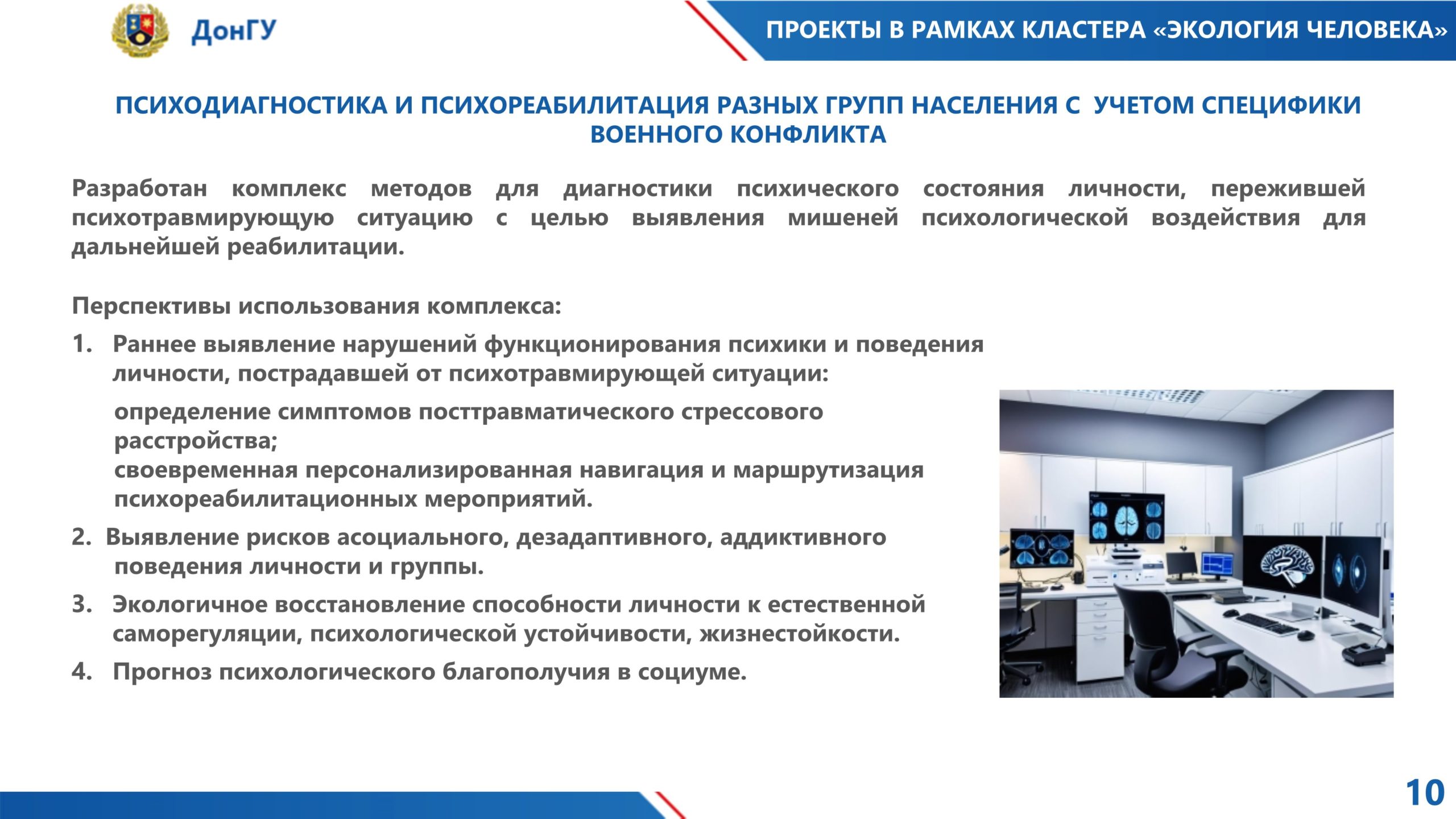 — диагностике и реабилитации психо- и нейрофизиологического состояния жителей зоны боевых действий с симптоматикой посттравматического стрессового расстройства,
