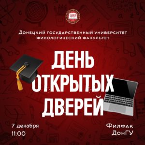 7 декабря в 11:00 состоится День открытых дверей на филфаке ДонГУ в онлайн-формате. Определиться с выбором будущей профессии можно уже в ближайшие выходные!