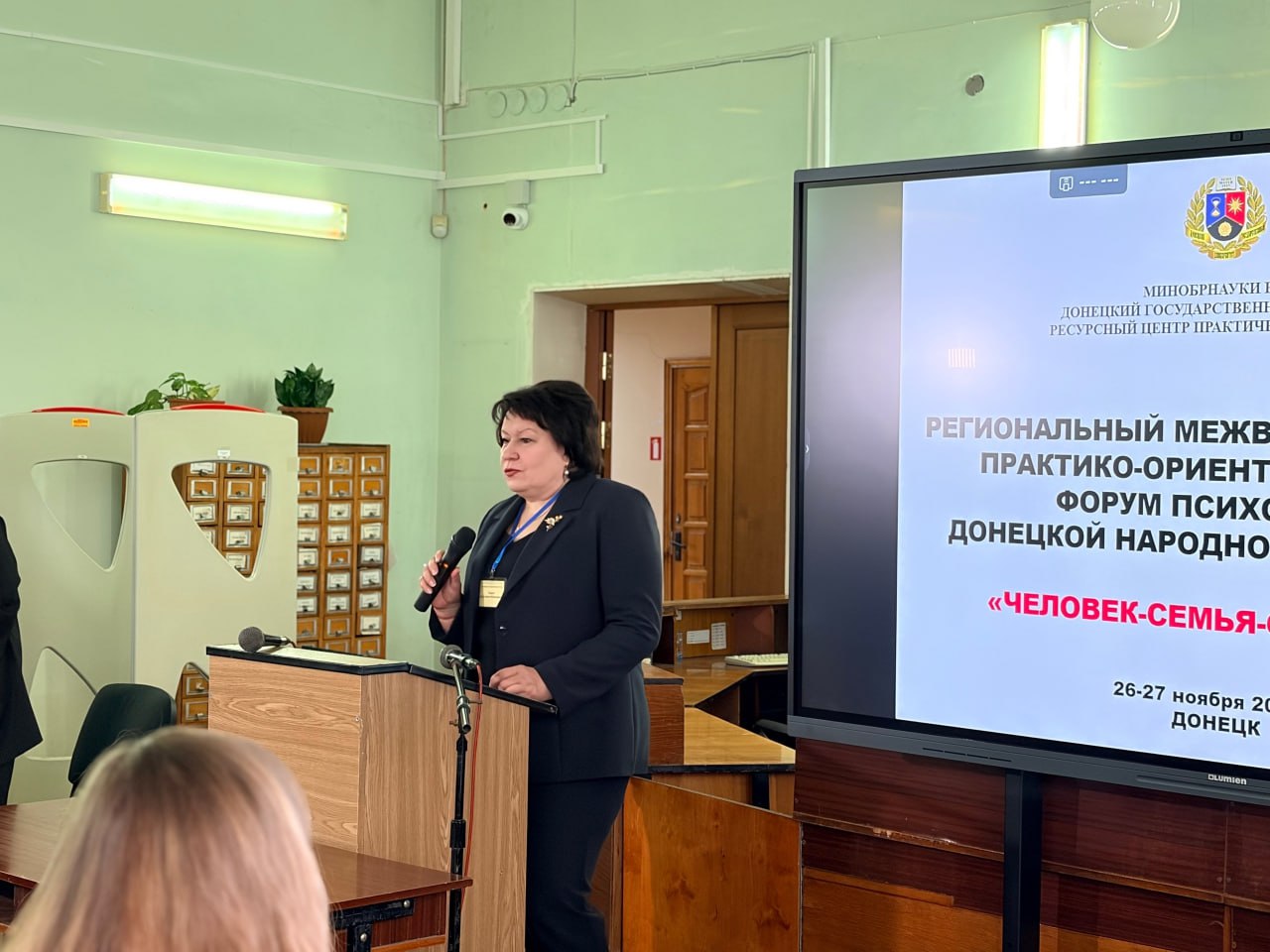 В Донецком государственном университете по инициативе Минобрнауки России на базе Ресурсного центра практической психологии ДонГУ 26-27 ноября прошел Региональный межведомственной форум психологов Донецкой Народной Республики «Человек-Семья-Общество».