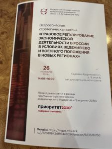 Темы докладов были разделены на блоки: элементы военной экономики России, особенности осуществления экономической деятельности и управления на территориях новых субъектов Российской Федерации и правовое регулирование экономических отношений в условиях мобилизации и ведения СВО.