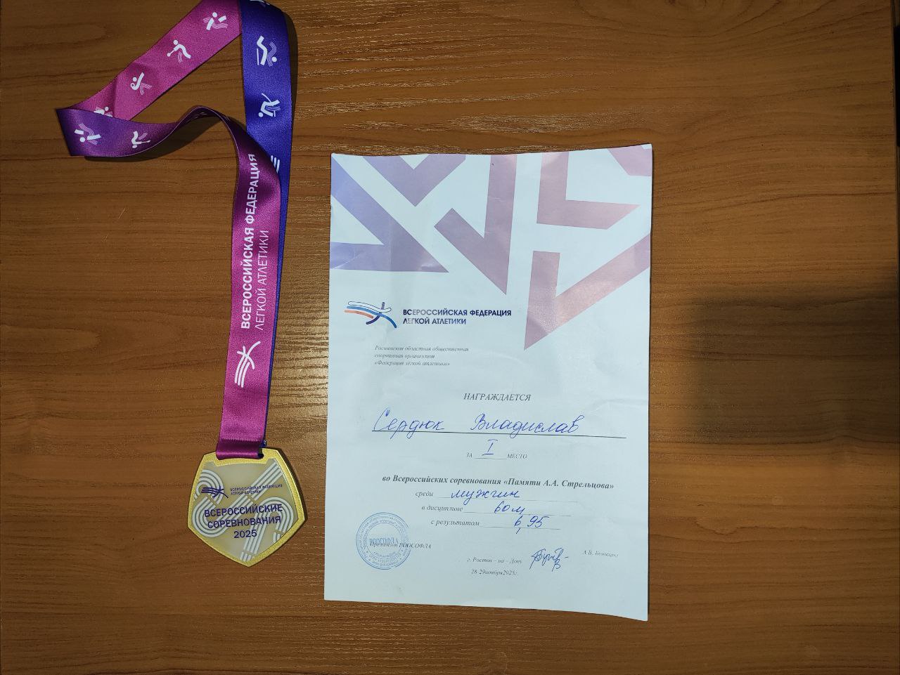 28-29 ноября в Ростове-на-Дону проходили Всероссийские соревнования памяти А.А.Стрельцова по лёгкой атлетике. Владислав Сердюк, студент 4 курса физико-технического факультета, в упорной борьбе смог одержать победу в дисциплине 60 метров с результатом 6,95 сек.