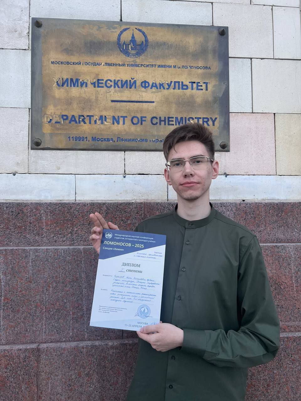 А также работает в должности инженера в Молодежной лаборатории по исследованию реакционной способности органических соединений.