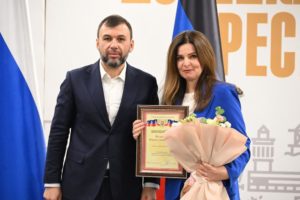 В числе наиболее активных лекторов были отмечены Анна Бурляй, заместитель декана филологического факультета, старший преподаватель кафедры русского языка и Марина Малыхина, кандидат искусствоведения, доцент кафедры культурологии. Денис Владимирович вручил им благодарности «За особый вклад в развитие молодёжной политики Донецкой Народной Республики».