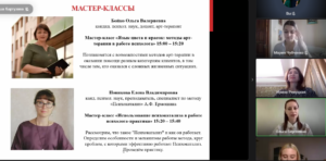 Практическая часть форума прошла в формате воркшопа «Урок психотерапии». Участники познакомились с возможностями арт-терапии, психокатализа, профайлинга и психоаналитической работы с психотравмой в рамках мастер-классов.