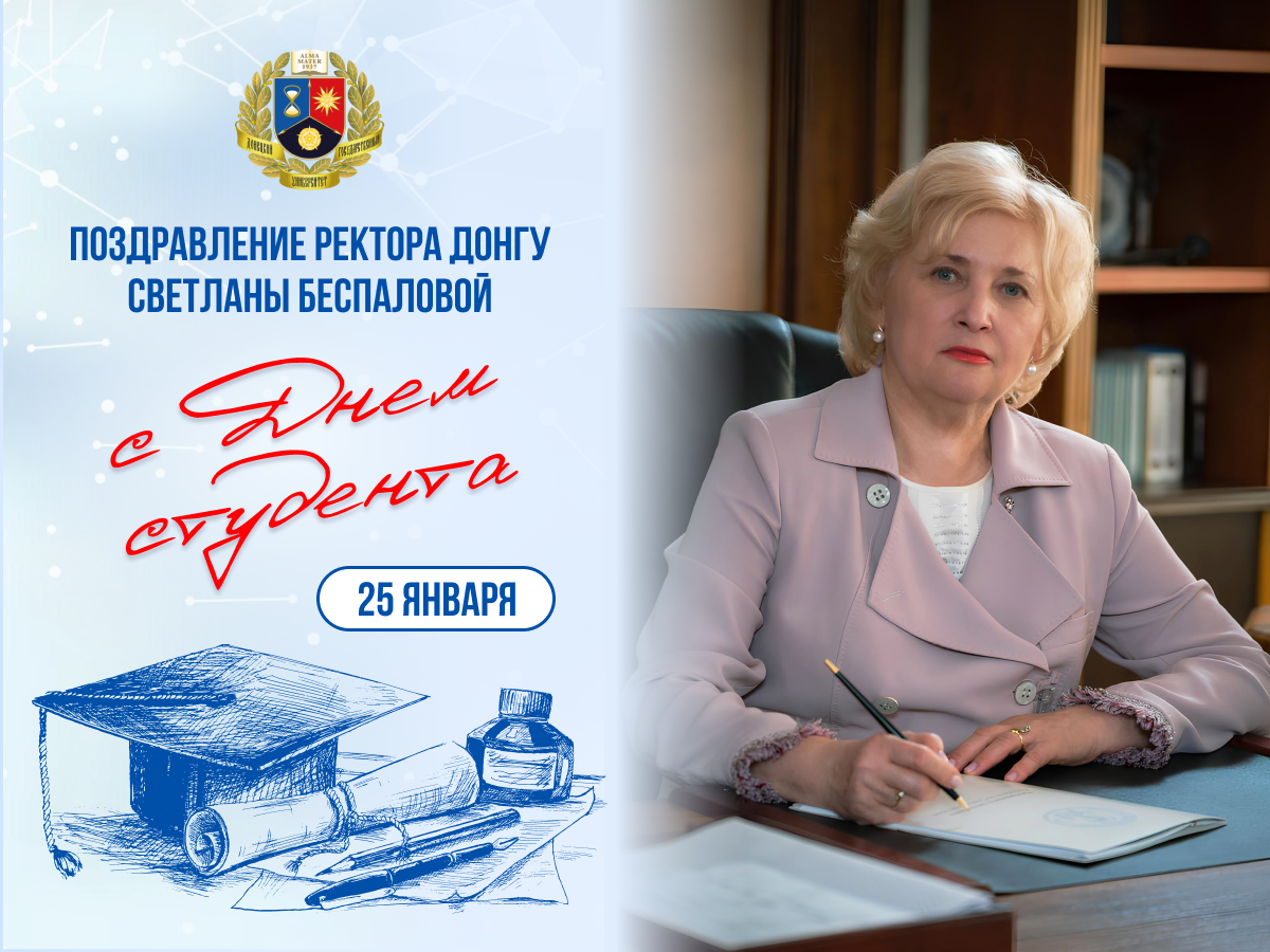 С Днем студента! Несите с честью и гордостью звание студента Донецкого государственного университета, продолжайте традиции, приумножайте достижения и славьте русский Донбасс на весь мир!