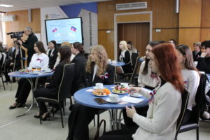 Председатель первичной профсоюзной организации студентов университета Мария Паливода поделилась успехами членов студенческого профкома, рассказала об одном из самых ярких мероприятий – Дебюте первокурсника.