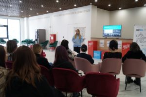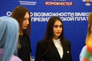 Ведущий специалист отдела по воспитательной и социальной работе со студентами Анна Савельева приняла участие в работе интерактивной площадки Президентской платформы «Россия — страна возможностей». Она выступала перед гостями в роли цифрового помощника Веры Возможностевой и рассказывала о проектах и конкурсах в рамках деятельности платформы.