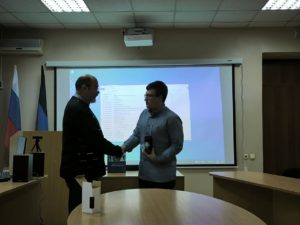 Представители молодежного клуба регионального отделения Российского исторического общества приняли участие в заседании, они были отмечены за успешное выступление на студенческой научной конференции, посвященной 80-летию Нюрнбергского судебного процесса над нацистскими военными преступниками.