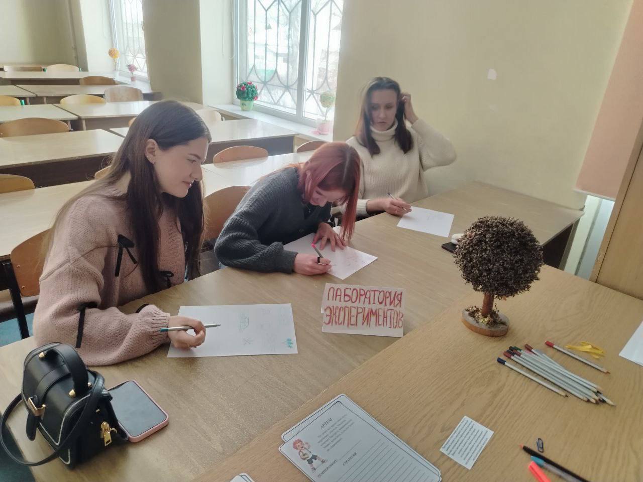 В игре приняли участие председатель СНО института педагогики ДонГУ Ульяна Мишко и студенты кафедр дошкольного и начального педагогического образования, специального (дефектологического) образования, дополнительного образования.