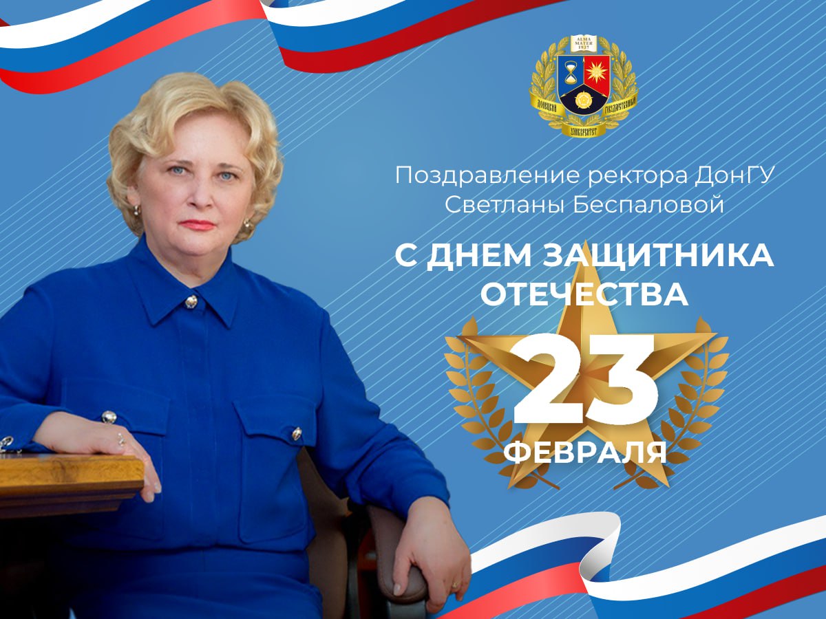 Сегодня, в День защитника Отечества, я искренне благодарю всех наших преподавателей, сотрудников, студентов, на передовой и в тылу ставших на защиту родного Донбасса и нашей Родины Великой России!
