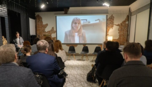 Открылась презентация видеообращением из Донецка доцента ДонГУ Ксении Першиной, которая говорила об острой актуальности вышедшей монографии, а также о плодотворном сотрудничестве донецких и екатеринбургских филологов.